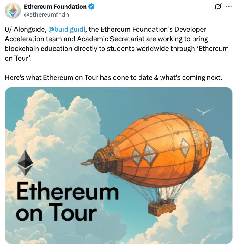 We’re visiting universities around the world to talk Ethereum, onboarding, and open-source! You can check the tour at: https://tour.ethereum.org/